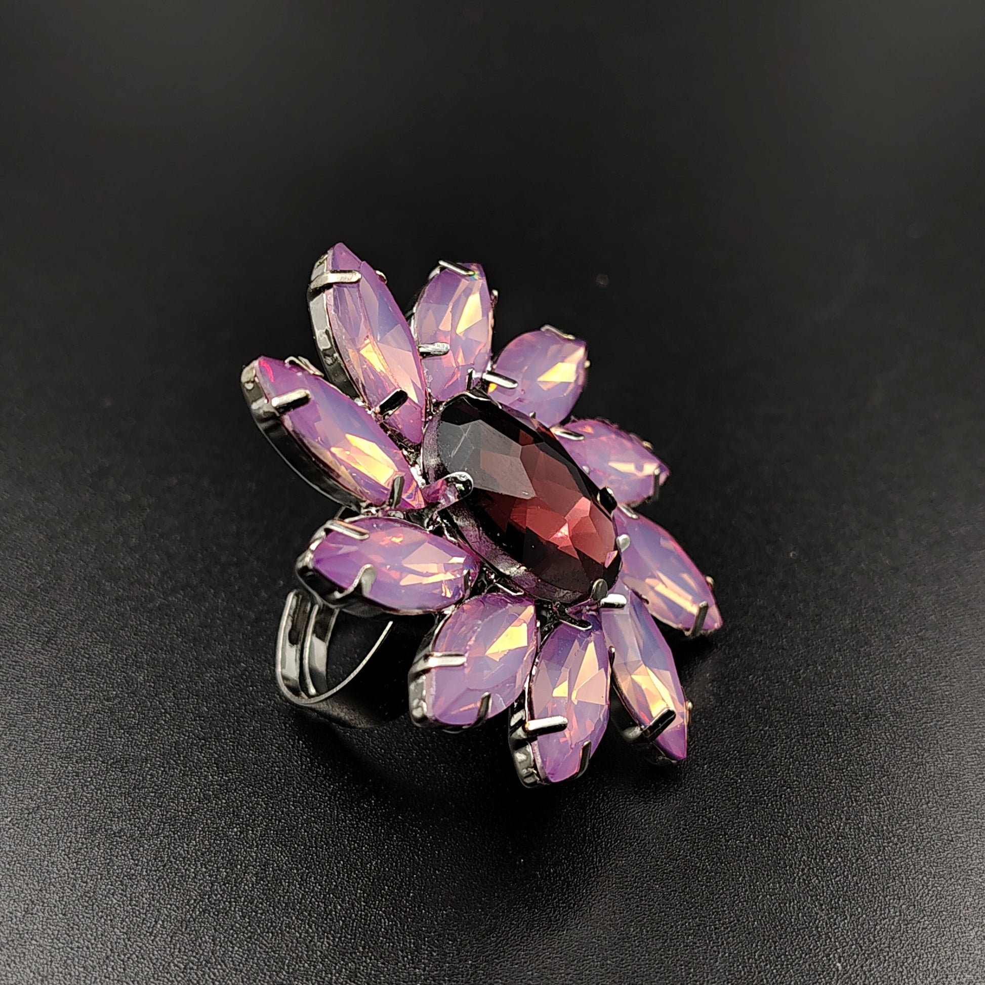Crystal Flower Statement Necklace, Purple Iridescent Petals
