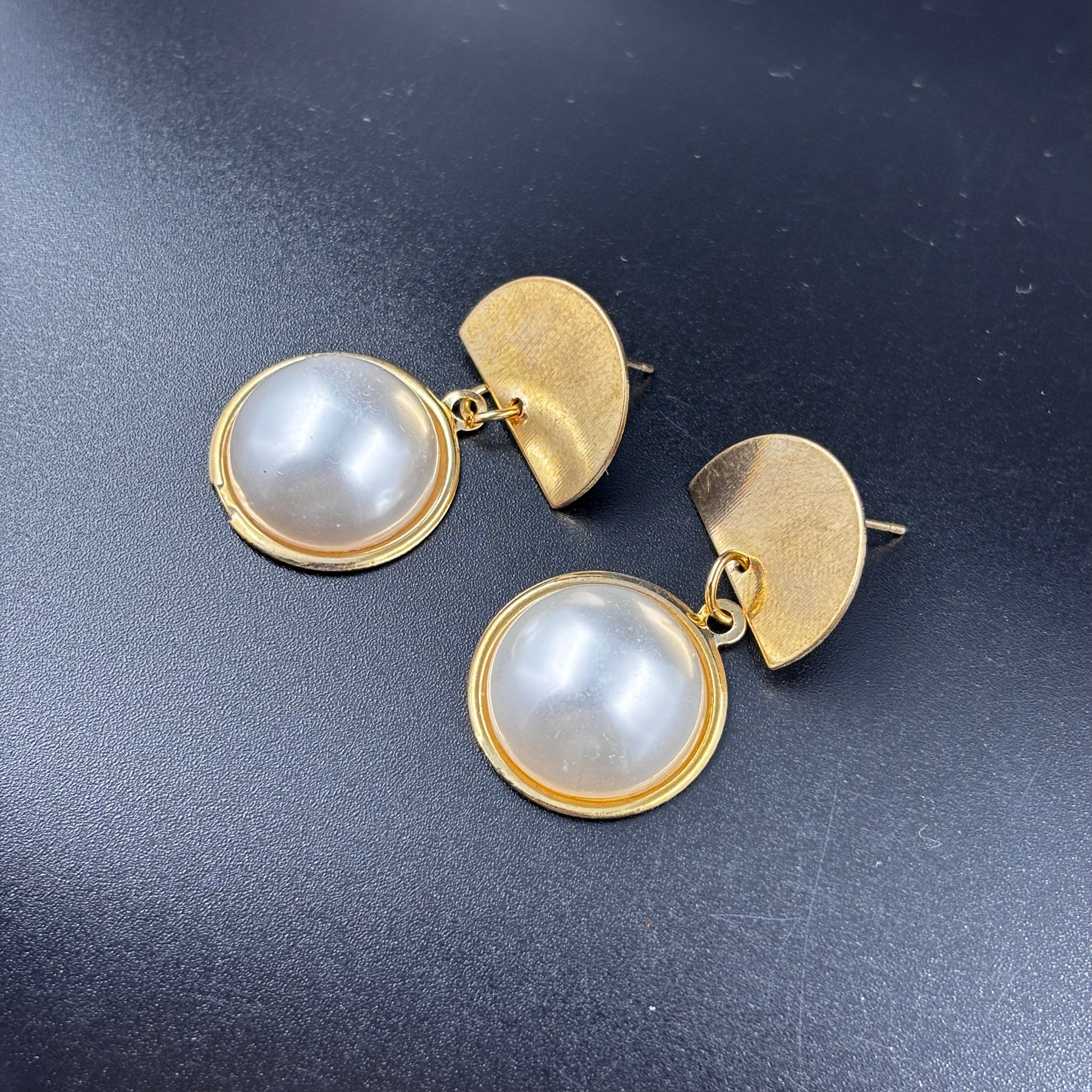 These sophisticated dangle earrings feature a half-moon gold-plated top with a round faux pearl drop, creating a timeless and elegant look. Perfect for both casual and formal occasions, these earrings add a touch of vintage charm and modern elegance to any outfit. Lightweight and comfortable, they make a stunning accessory for weddings, parties, or everyday wear.