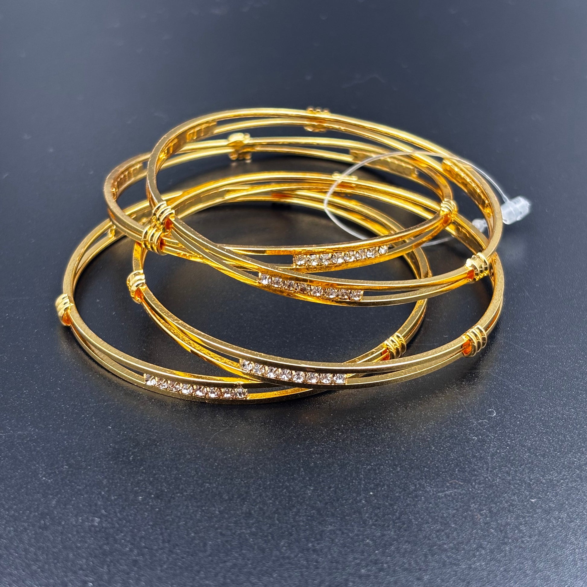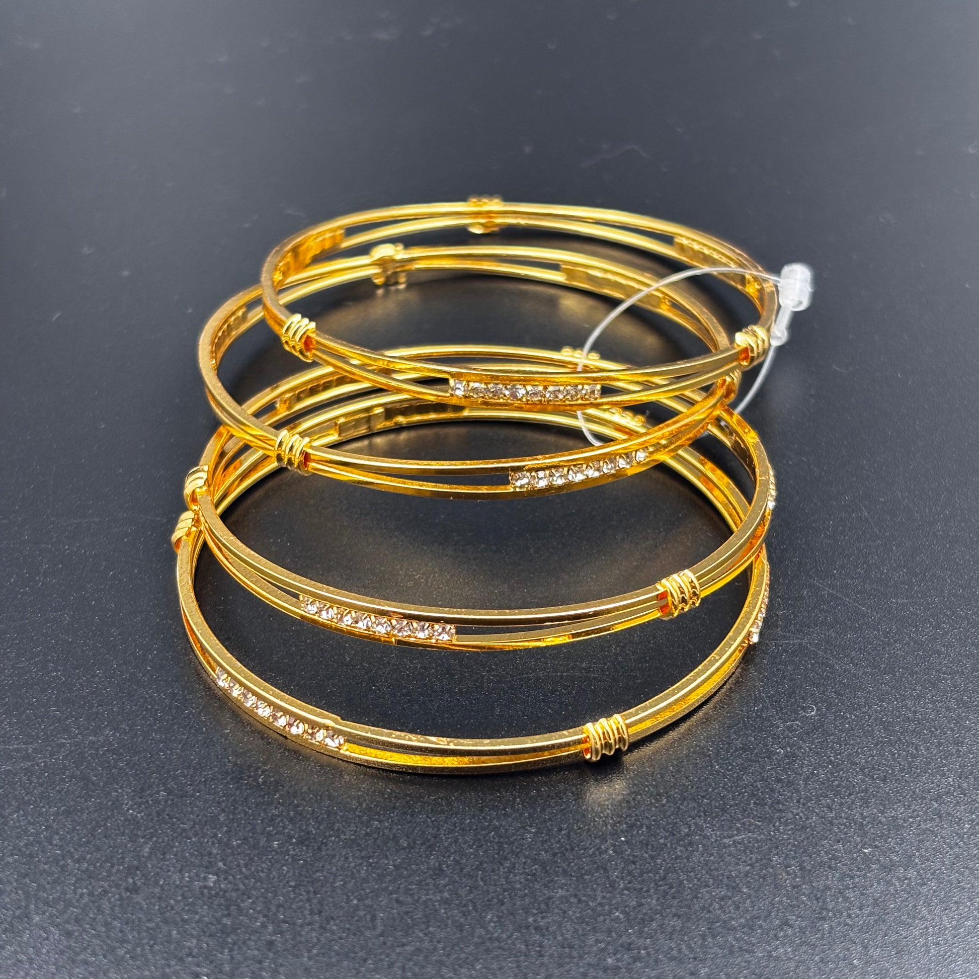 Gold-Plated Crystal Bangle Bracelet Set, Rhinestone Studded, 4 Pieces size 2 6