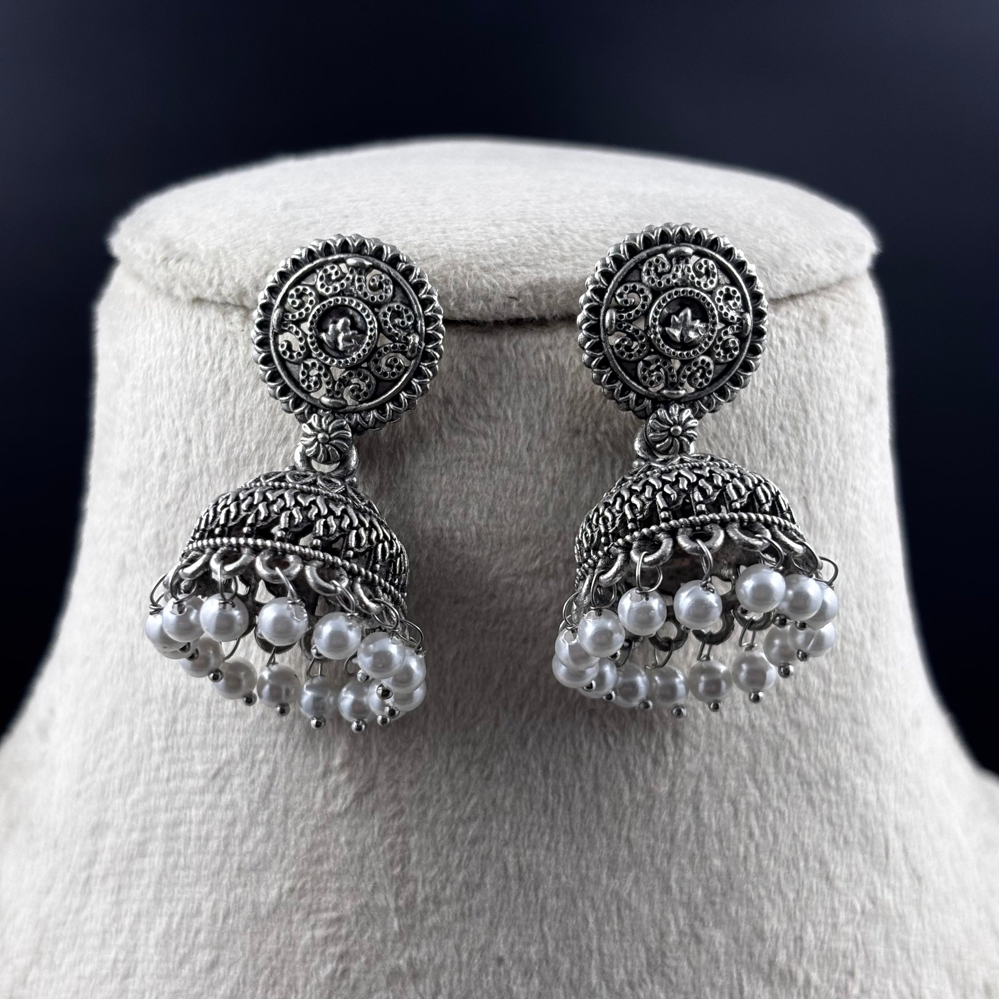Oxidised Silver Plated Traditional Jhumka Earrings For Women & Girls Beads Brass Jhumki Earring