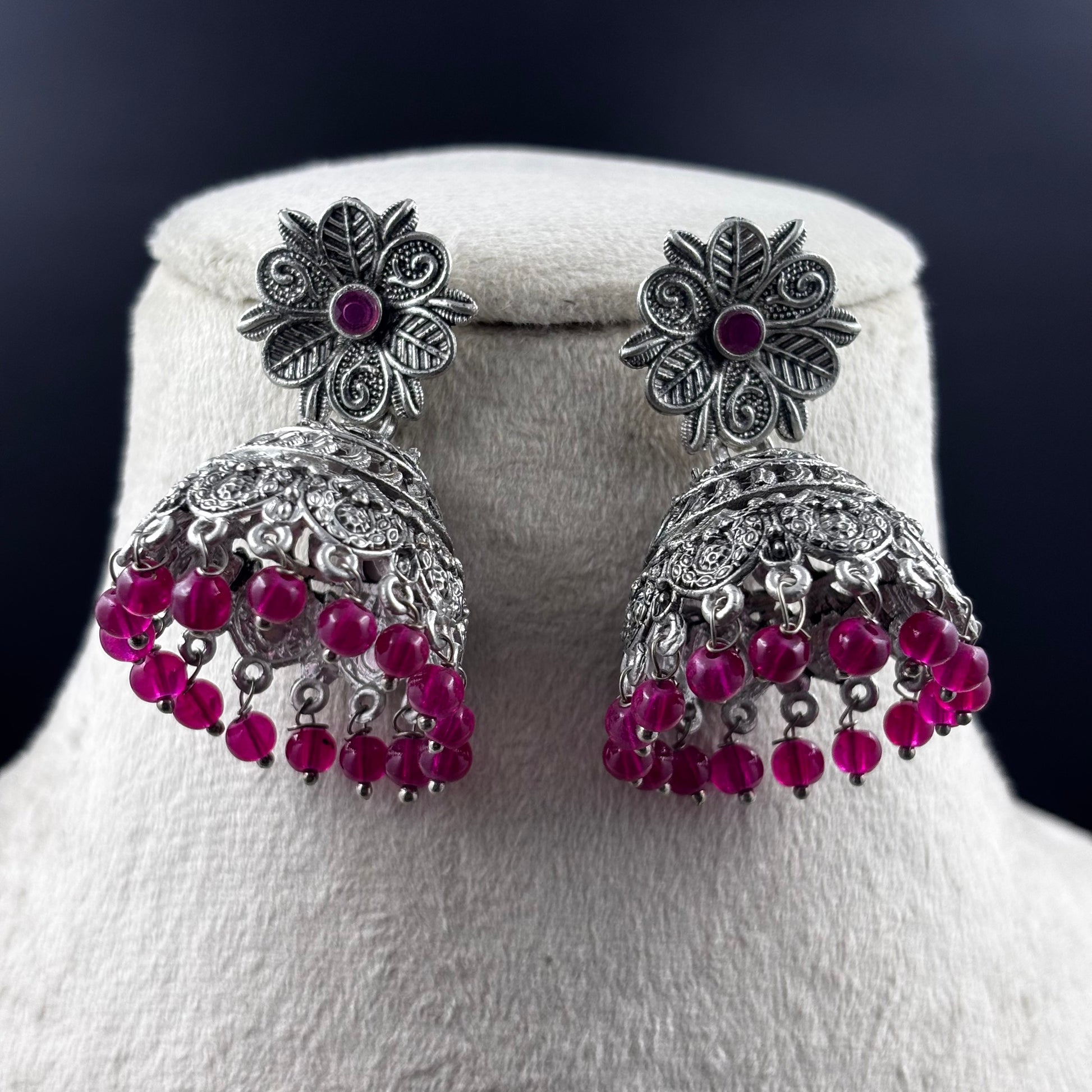 Stylish Pink Pearl Oxidise Jhumka Earrings